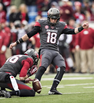 Overview: Led team with 104 points in 2010, connecting on 16 of 19 field-goal attempts with a long of 51 and all 56 extra-point tries. Broke the school record for points by a kicker in 2011 with 118 after making 21 of 27 FGs with a long of 50 and 55 of 57 PATs. Also kicked off 93 times for a 67.8-yard average with 40 touchbacks. In 2012, made 11 of 18 FGs with a long of 46 and all 32 PATs, and kicked off 58 times for a 64.7-yard average with 39 touchbacks. In 2013, hit on 13 of 15 FGs with a career long of 54 and all 28 PATs, and kicked off 50 times for a 63.2-yard average with 34 touchbacks. Also punted seven times for a 45.7-yard average with a long of 77 and one inside the 20-yard line. Led the Razorbacks in scoring each season and holds school records for points by a kicker (354), FG percentage (77.2), PATs made (171), PATs attempted (173) and field goals (61).