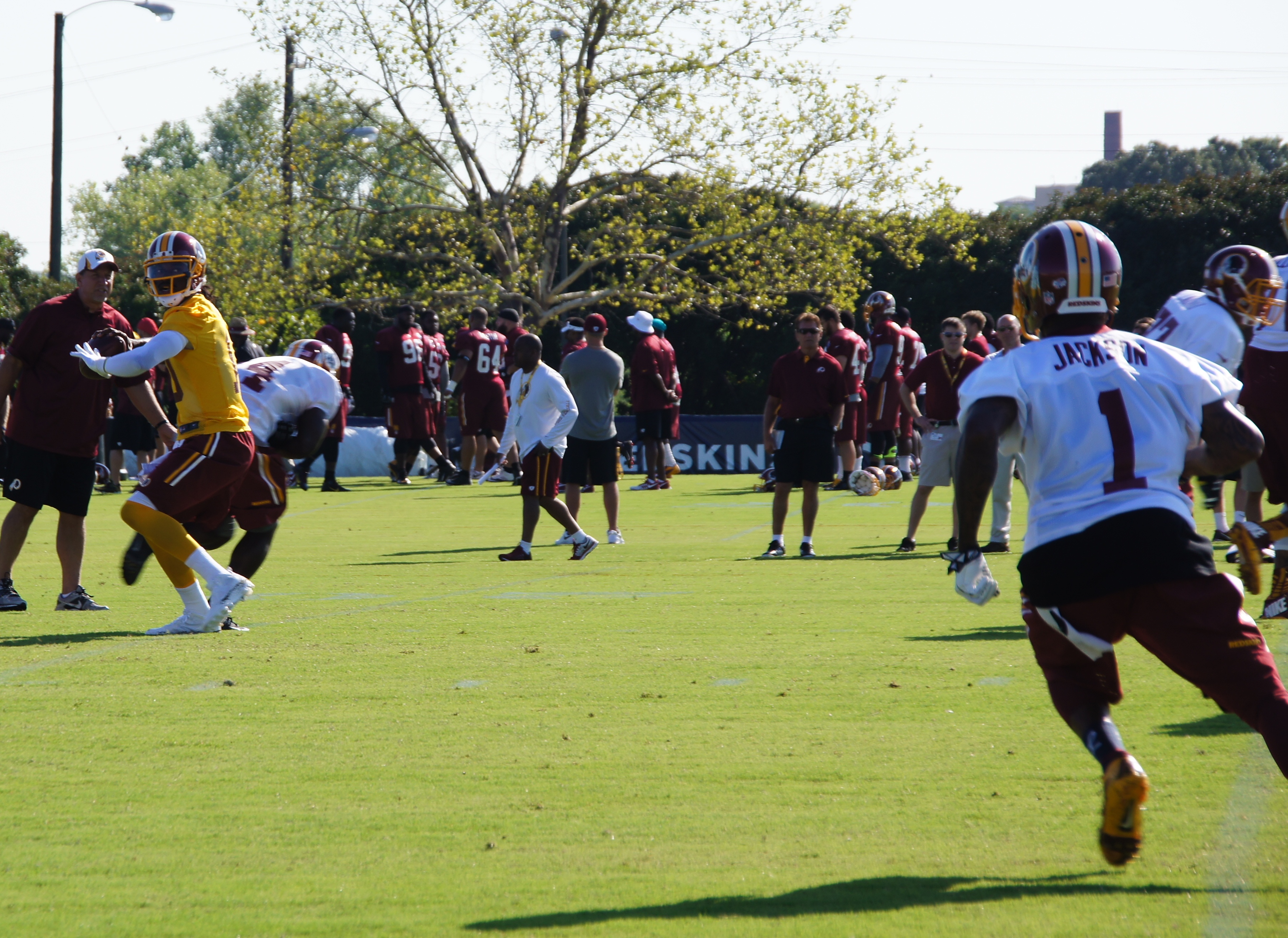 ← Previous Next → Quarterback Robert Griffin III looks for wide receiver DeSean Jackson. Photo by Terri Russell.