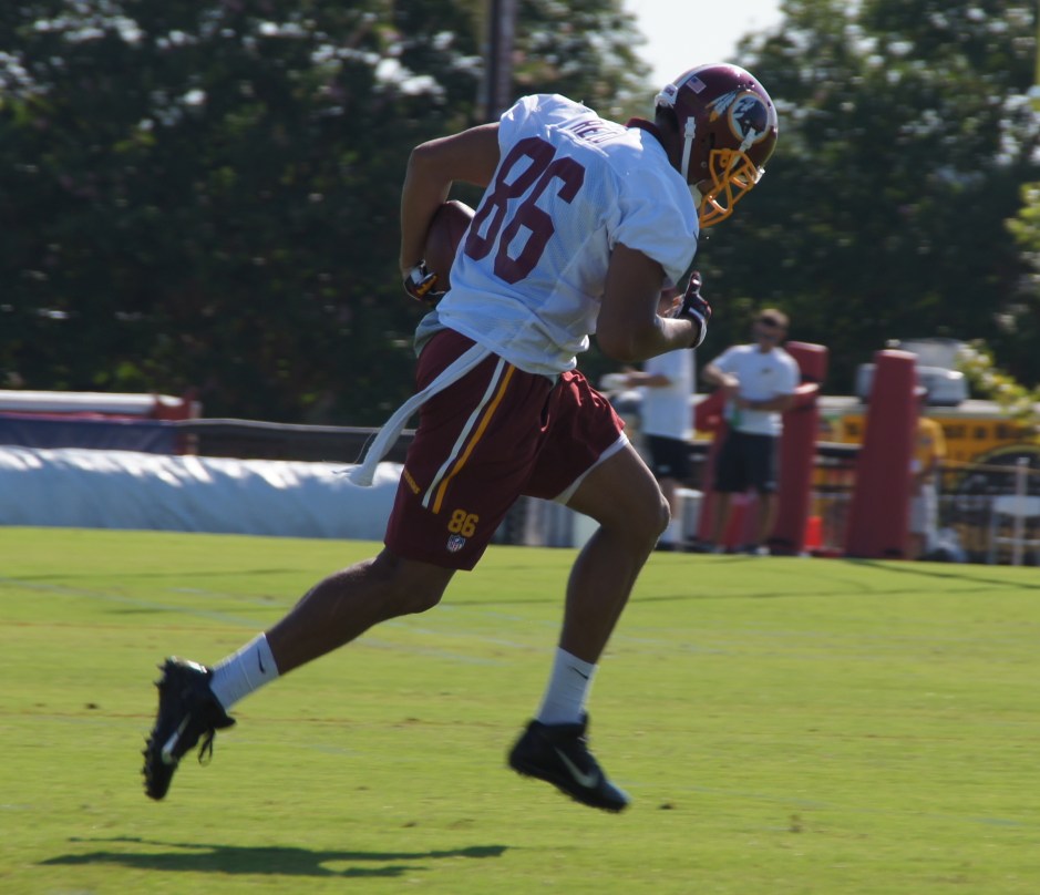 Tight end Jordan Reed runs upfield. Photo by Terri Russell.
