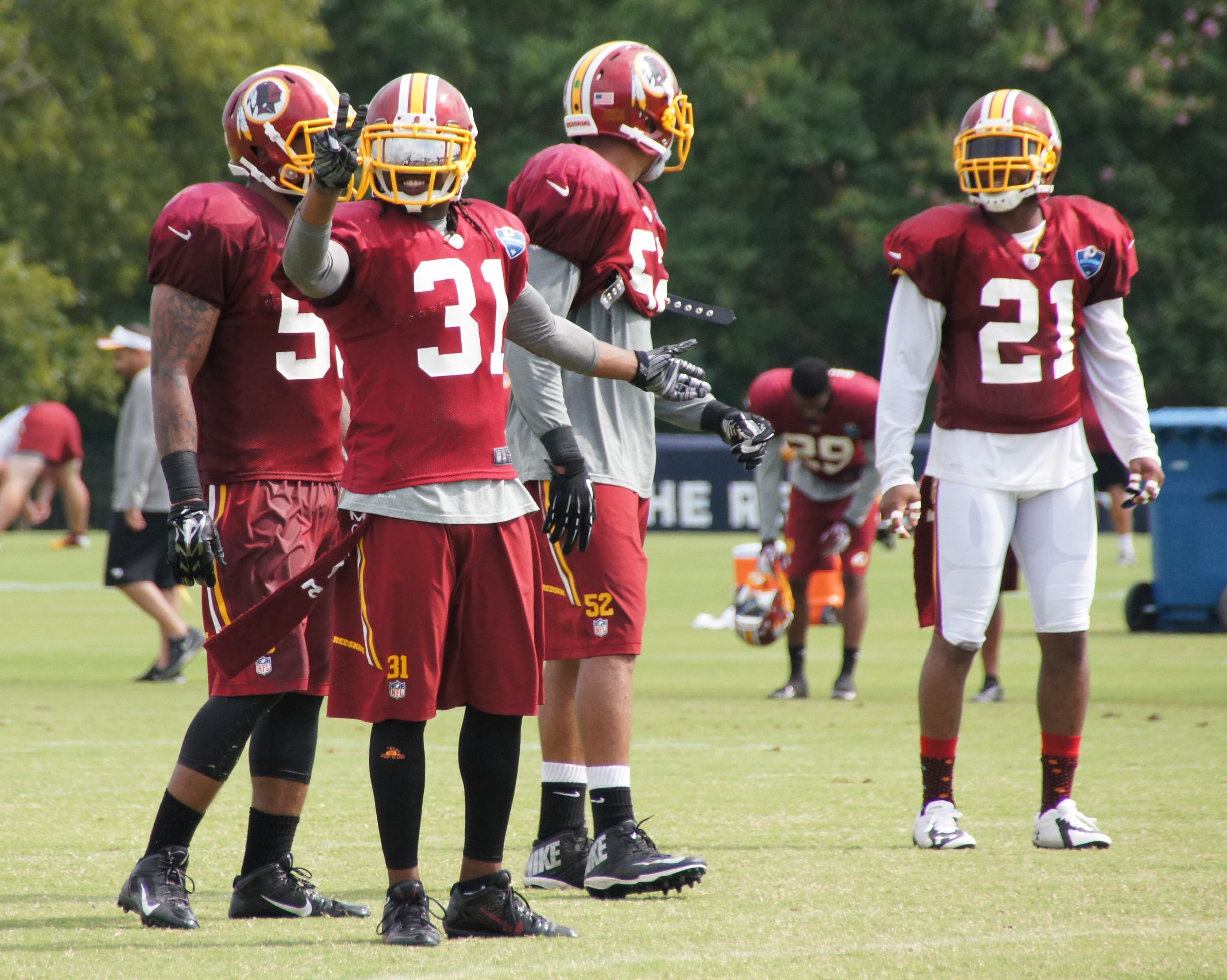 Safety Brandon Meriweather waits for the play to start. Photo by Jake Russell.