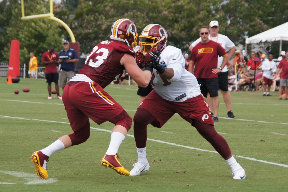 ← Previous Next → Offensive tackle Trent Williams battles linebacker Trent Murphy. Photo by Jake Russell.