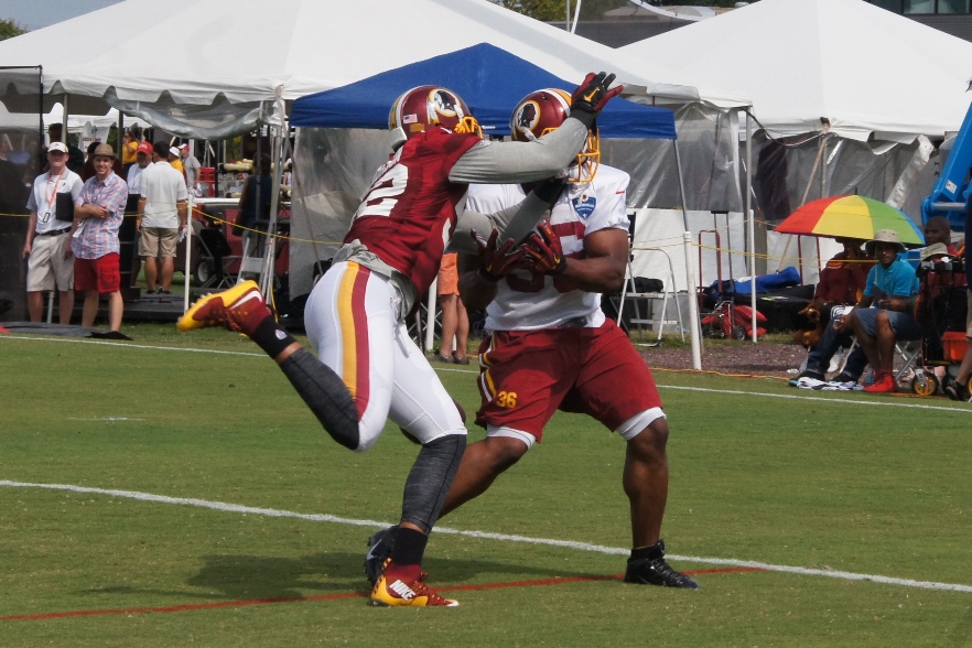 ← Previous Linebacker Keenan Robinson breaks up a pass to fullback Darrel Young. Photo by Jake Russell.