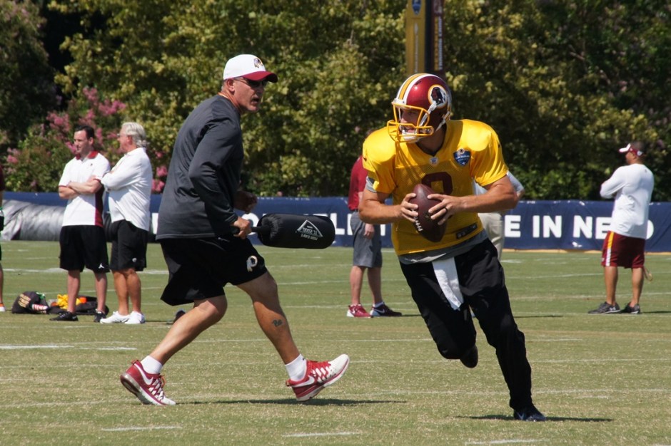 Quarterback Kirk Cousins runs a drill. Photo by Jake Russell.