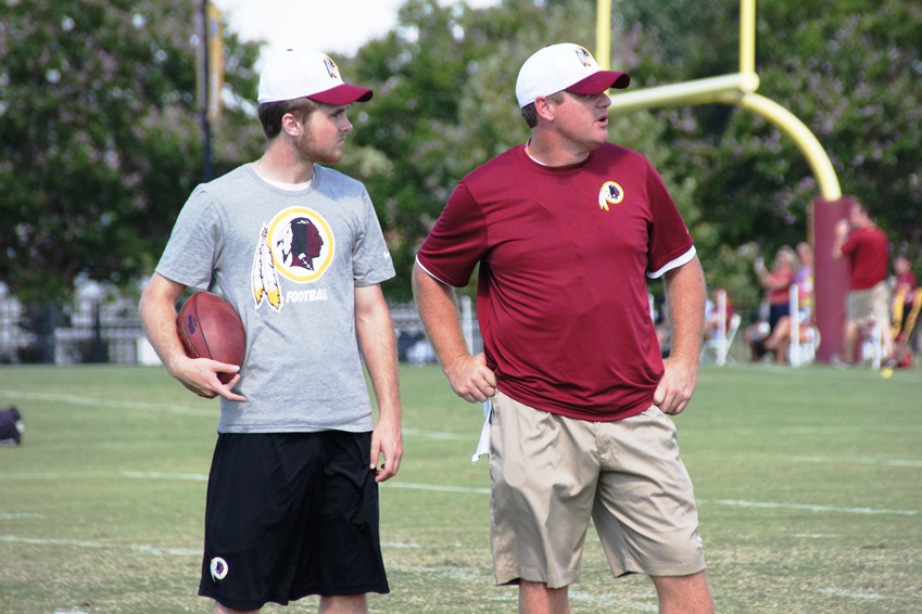 ← Previous Next → Head coach Jay Gruden and his son, Jack, look on during practice. Photo by Jake Russell.
