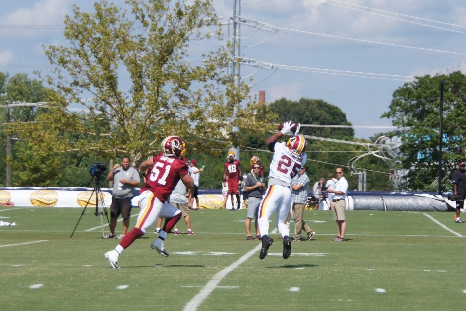 SONY DSC ← Previous Next → Chris Thompson makes the catch in front of Will Compton. (Photo by Jake Russell)
