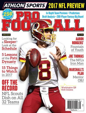 Notable Anecdotes: “Kirk Cousins’ future” is No. 5 in Athlon’s story “15 Things to Watch in 2017.” In the “Athlon Sports Top 50 Ranking,” Josh Norman came in at No. 37 and Kirk Cousins ranked No. 50. Shockingly there was no Trent Williams on that list. Terrelle Pryor did not make the list of Top 30 wide receivers. Trent Williams was ranked as the fourth-best offensive tackle in football while Brandon Scherff was listed as the 15th-best guard in the NFL. Zach Brown came in at No. 14 in the Top 20 inside linebackers, while Ryan Kerrigan (No. 9) and Trent Murphy (No. 19) made the Top 20 3-4 outside linebackers. Josh Norman was ranked the fourth-best cornerback in football. No Redskin cracked the Top 20 centers, defensive tackles or 3-4 defensive ends, nor the Top 30 safeties. The Redskins 2017 draft was graded a B+.