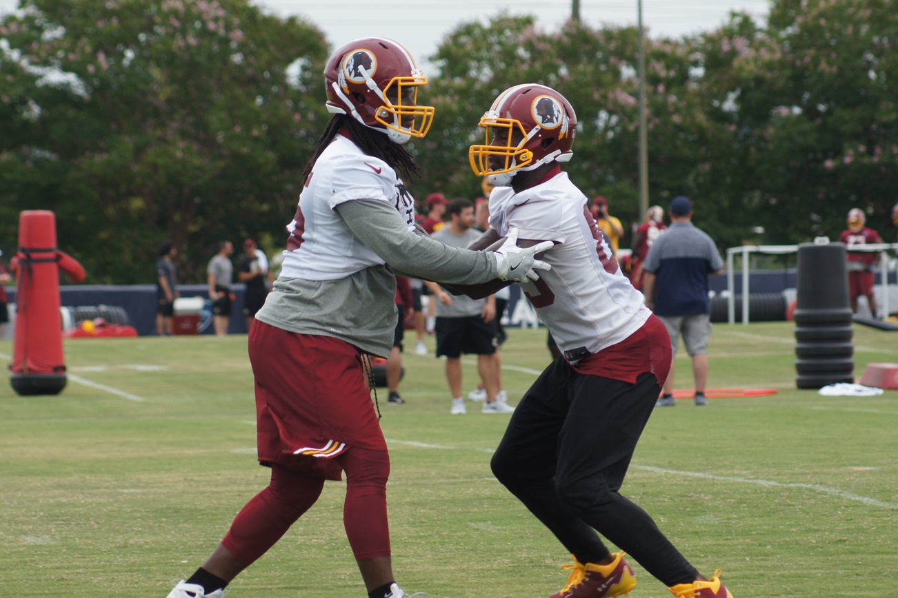 Tight ends E.J. Bibbs and Vernon Davis. (Photo by Jake Russell)