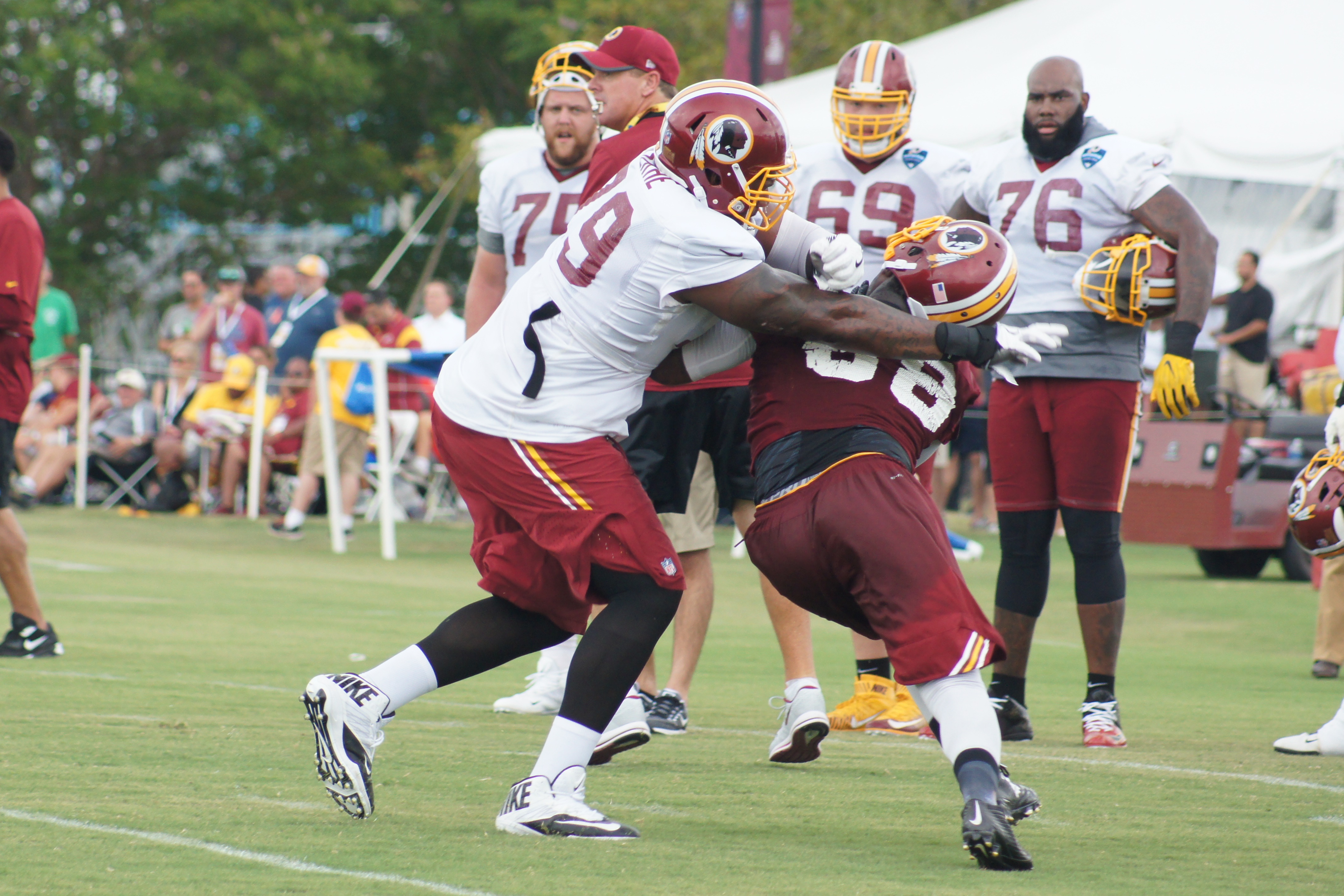 ← Previous Next → Offensive tackle Ty Nsekhe tries to keep linebacker Junior Galette at bay. (Photo by Jake Russell)