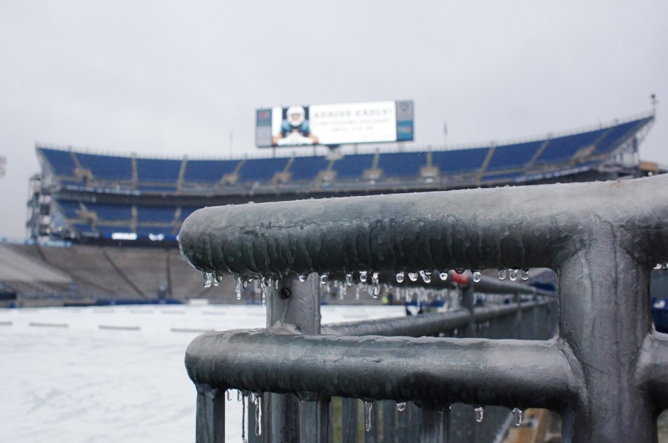 A frozen Beaver Stadium is eerily calm hours before kickoff. (Photo by Jake Russell)