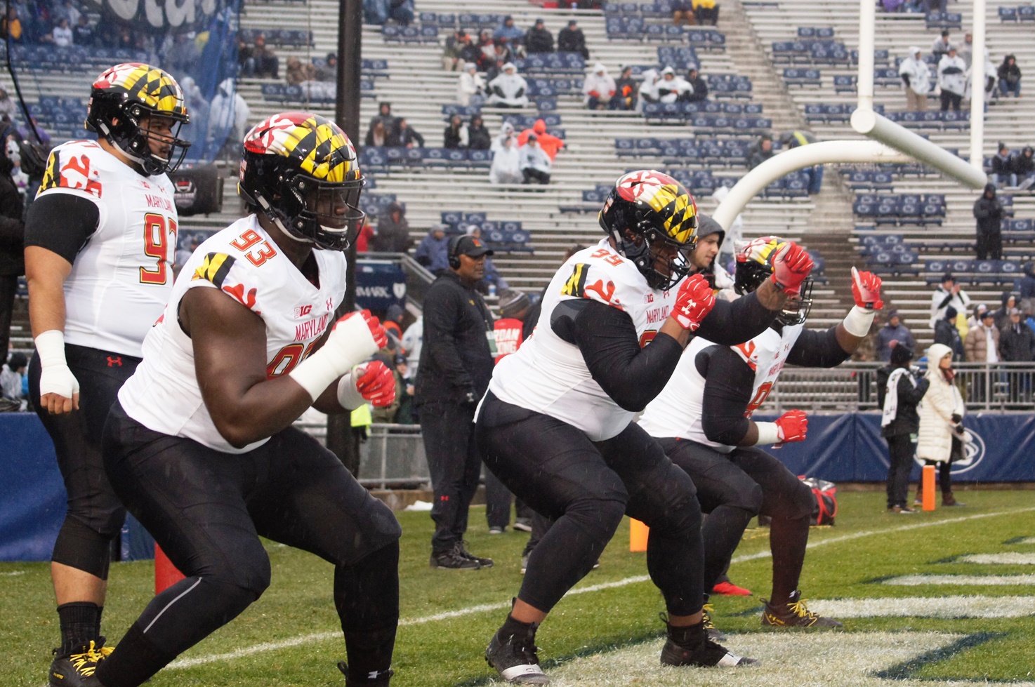 SONY DSC ← Previous Next → Maryland’s offensive line gets in some pregame reps. (Photo by Jake Russell)