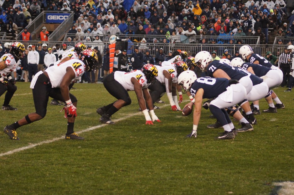Both teams prepare for the snap. (Photo by Jake Russell)