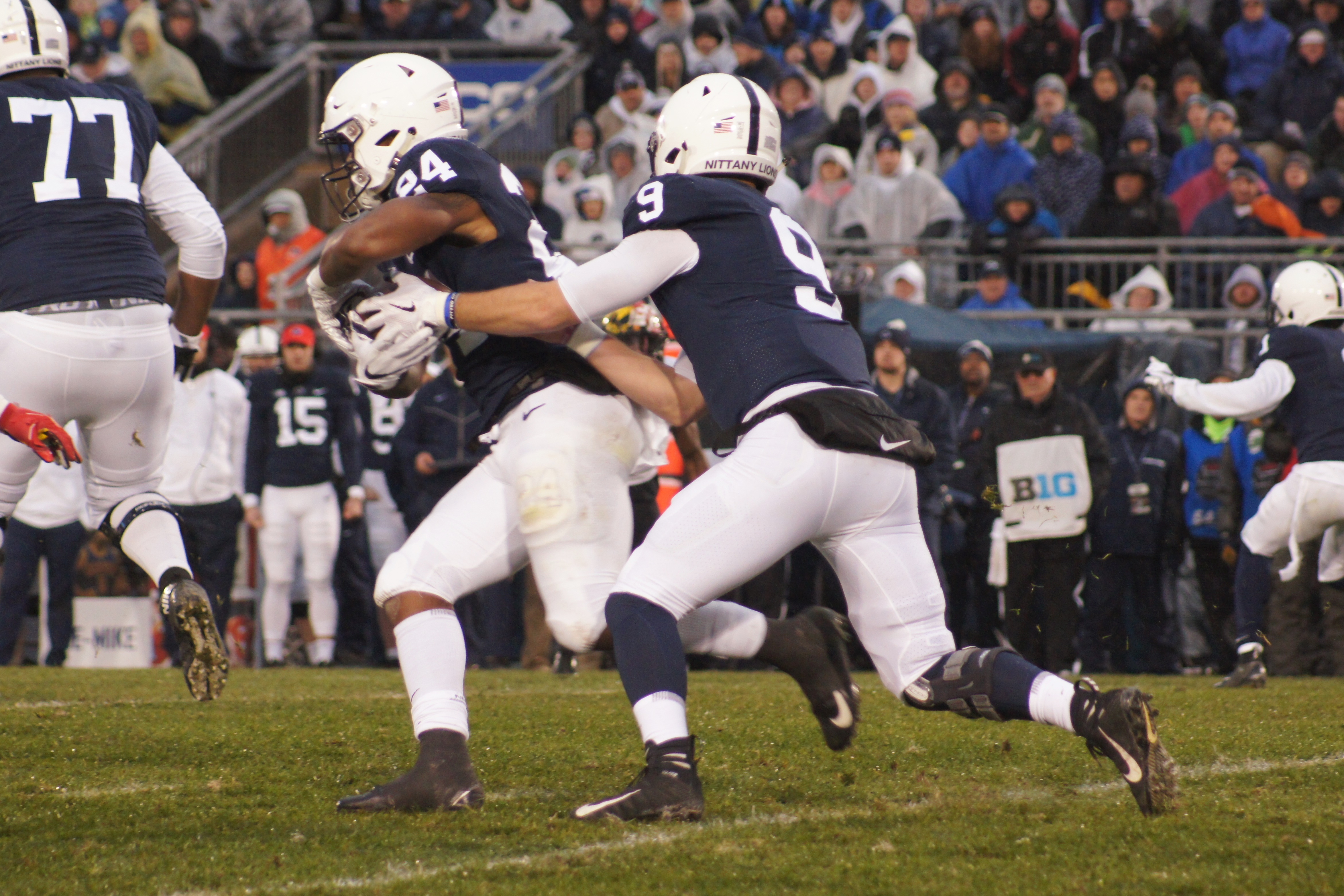 SONY DSC ← Previous Next → Trace McSorley hands off to running back Miles Sanders. (Photo by Jake Russell)