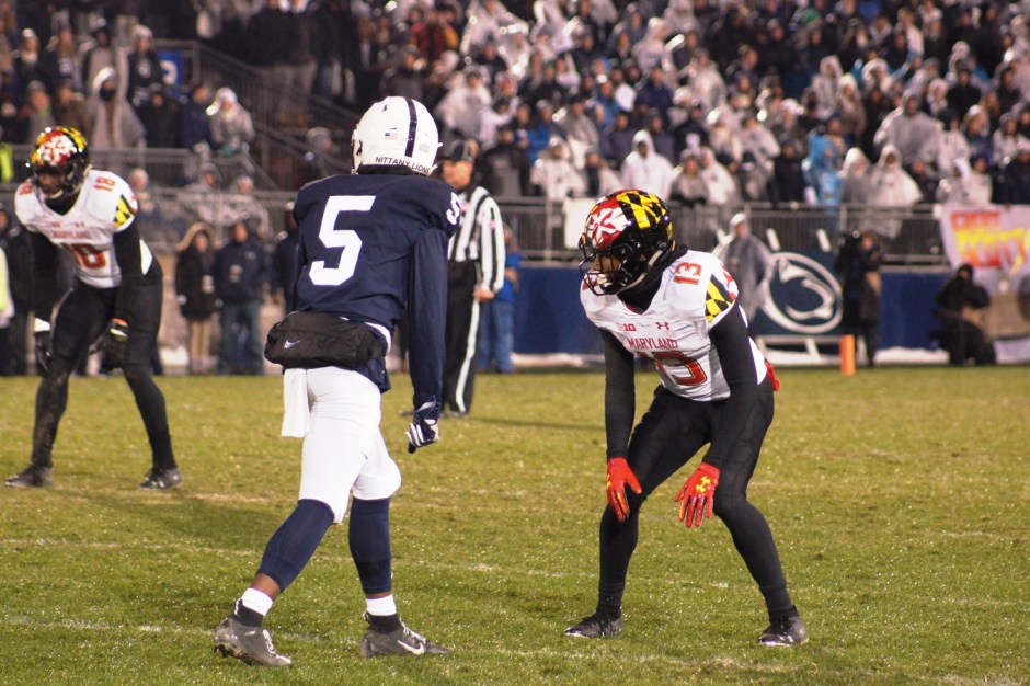 SONY DSC ← Previous Next → Maryland defensive back Rayshaud Lewis lines up against Penn State wide receiver Jahan Dotson. (Photo by Jake Russell)
