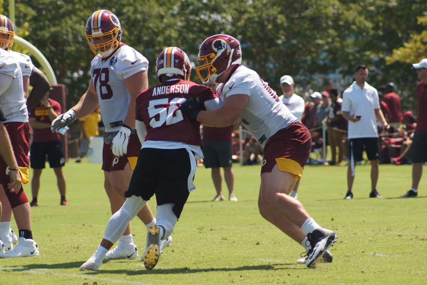 SONY DSC ← Previous Next → Linebacker Ryan Anderson tries to get past offensive tackle Blake Hance. (Photo by Jake Russell)
