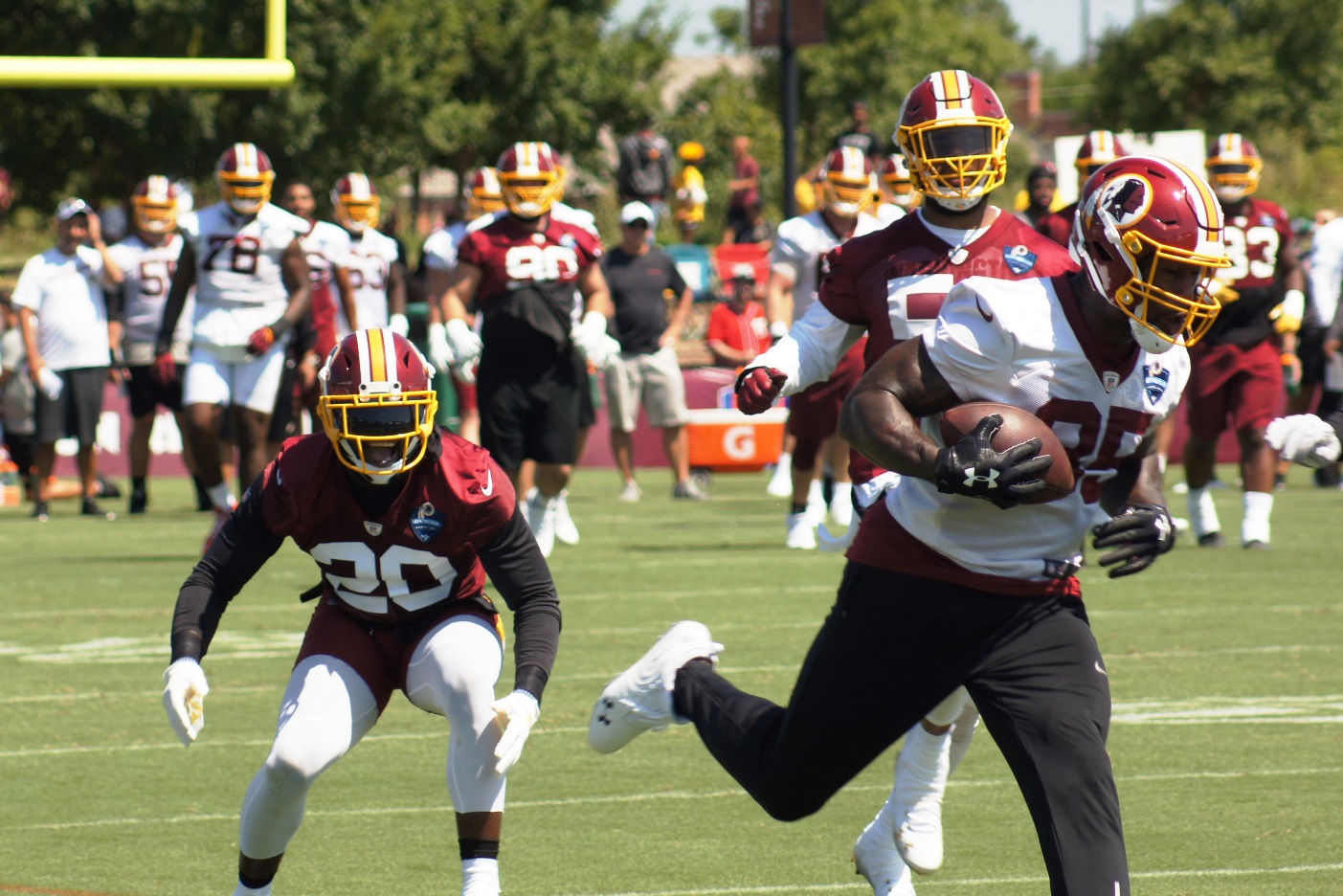SONY DSC ← Previous Next → Safety Landon Collins laments his tipped pass that was caught by tight end Vernon Davis. (Photo by Jake Russell)