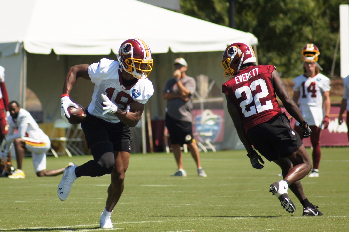SONY DSC ← Previous Next → Wide receiver Robert Davis runs past safety Deshazor Everett. (Photo by Jake Russell)