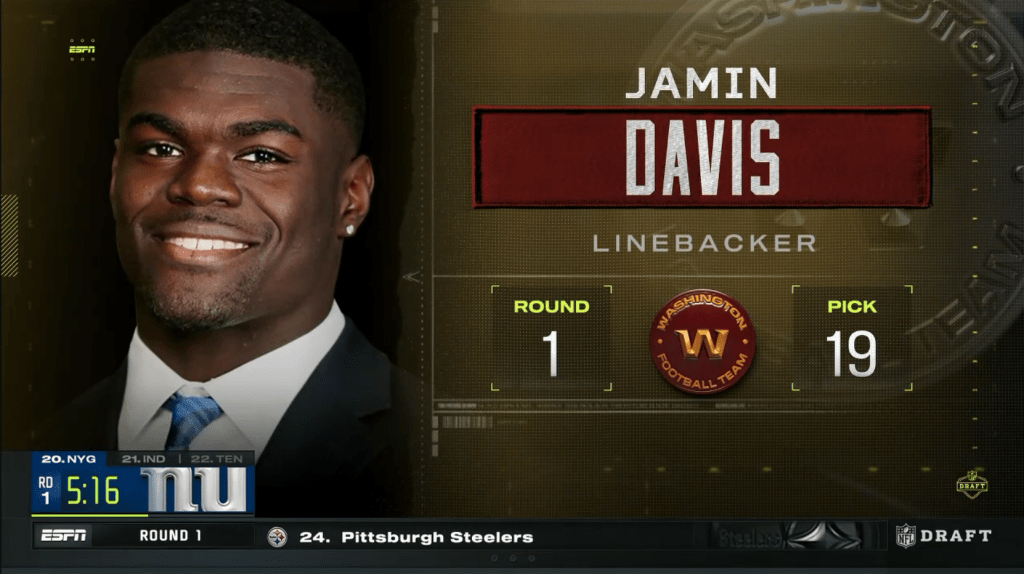 For the fifth straight year, the Washington Football Team went defense in the first round, selecting Kentucky linebacker Jamin Davis to man the middle and play behind one of the best defensive lines in the league. The team picked its likely long-term answer at left tackle, added secondary and defensive end depth, selected a couple thousand-yard receivers, drafted a blocking tight end to compliment starter Logan Thomas and found its Nick Sundberg replacement at long snapper.