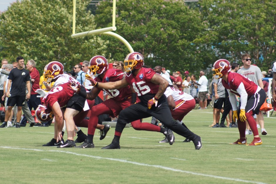 The Redskins go through special teams drills. (Photo by Jake Russell)