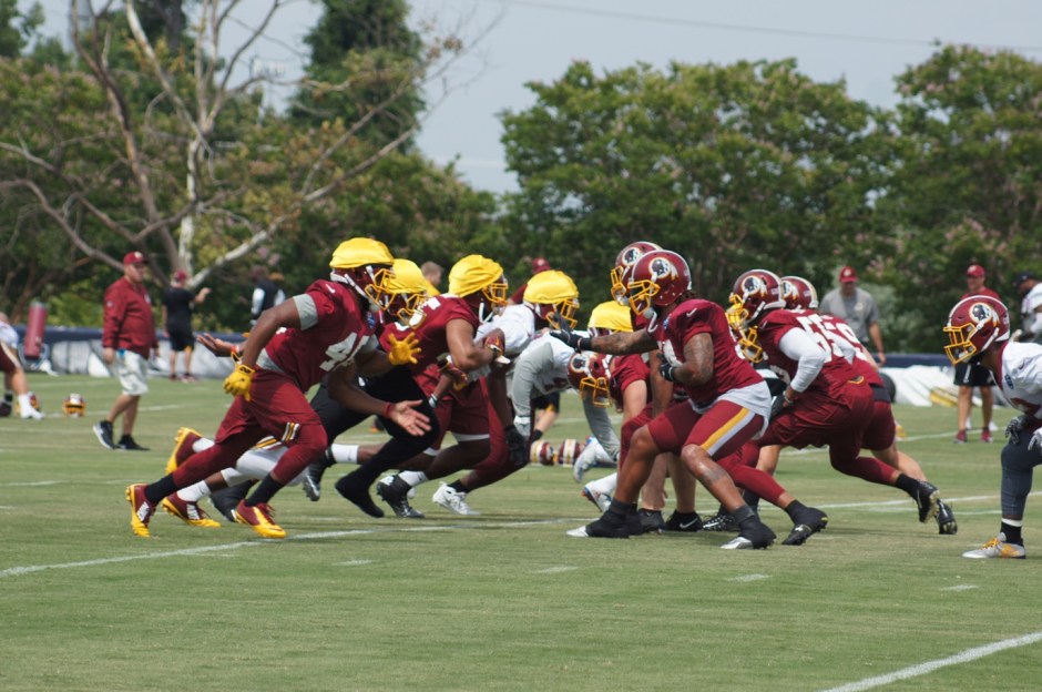 The Redskins work on special teams drills. (Photo by Jake Russell)