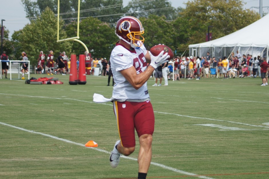 Tight end Derek Carrier catches a pass. (Photo by Jake Russell)